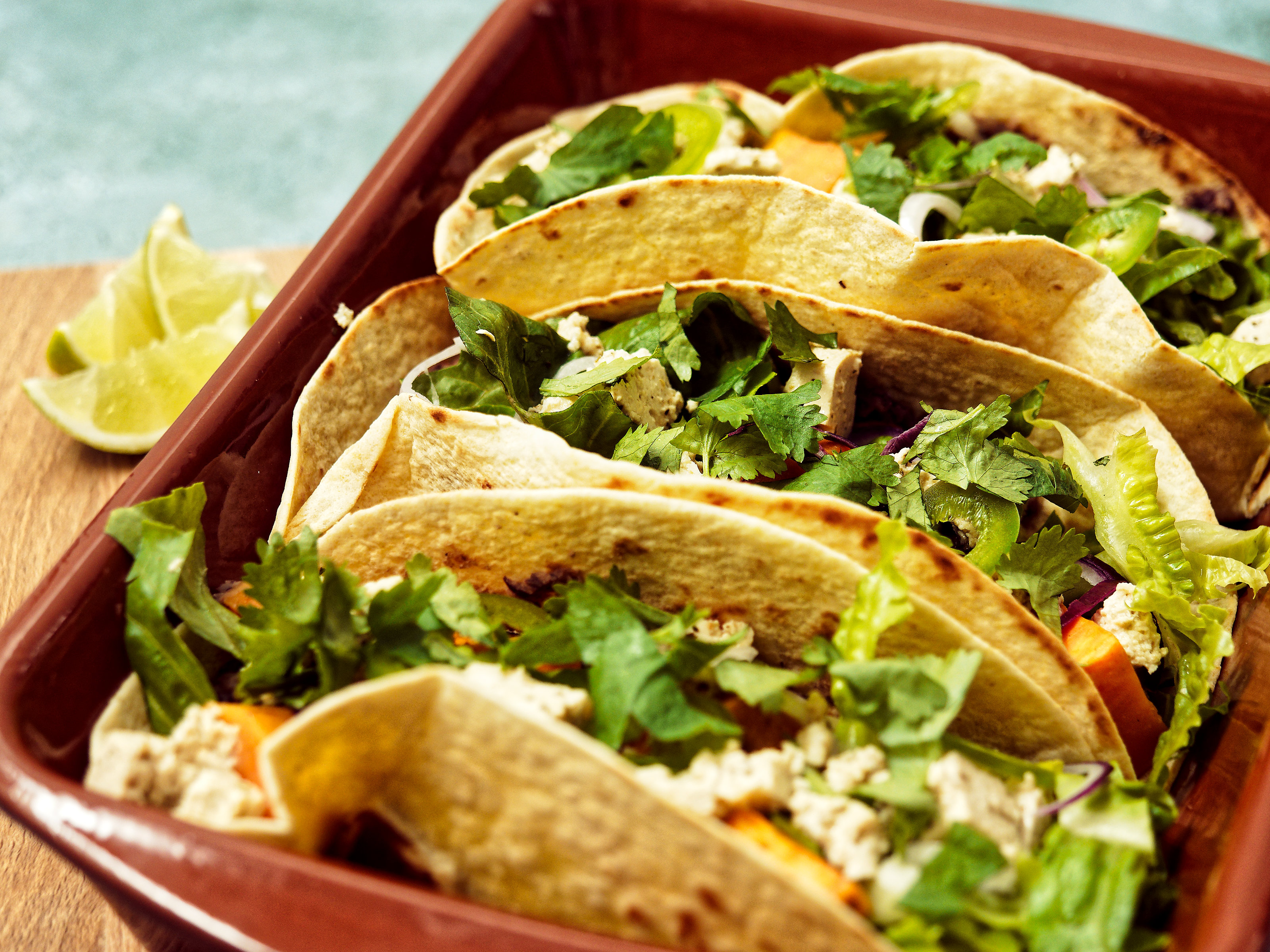 Zoete aardappel-zwarte bonen taco's